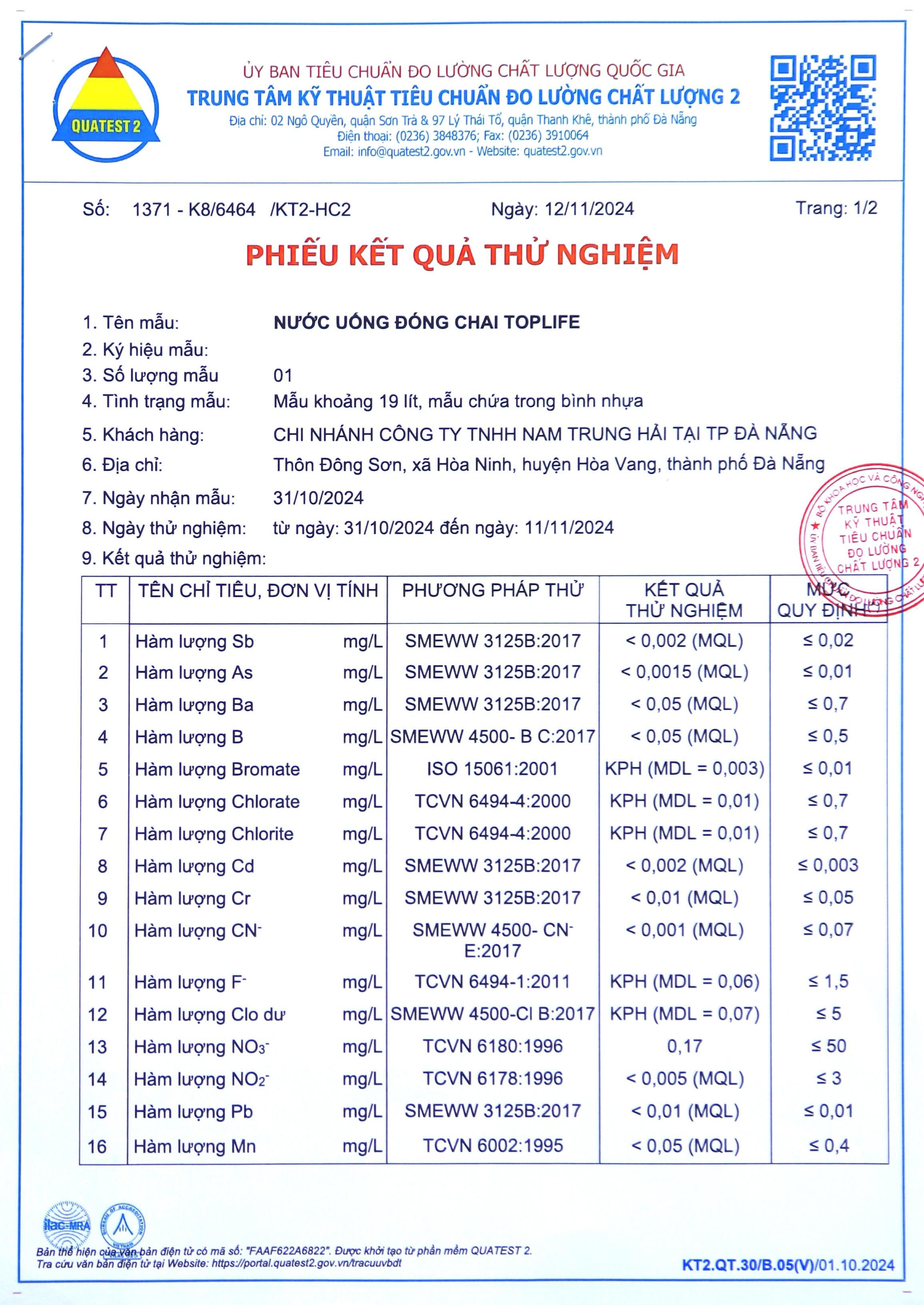 Toplife® – Thương hiệu nước uống đóng chai tinh khiết hàng đầu tại Đà Nẵng, trực thuộc Công ty TNHH Nam Trung Hải được thành lập từ 2008. Với 16 năm kinh nghiệm, chúng tôi không ngừng đổi mới để mang đến nguồn nước tinh khiết, vì sức khỏe cộng đồng.